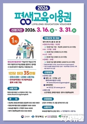 [시사뉴스 장시목 기자]영주시는 시민의 평생학습 참여 기회를 확대하고 교육격차를 해소하기 위해 오는 3월 16일부터 31일까지 ‘2026년 평생교육이용권’과 ‘2026년 장애인 평생교육이용권’ 신청을 접수한다고 밝혔다. 이번 사업은 경제적 여건 등으로 평생교육 참여가 어려운 시민들에게 학습 기회를 제공하고 자기계발과 자아실현을 지원하기 위해 추진된다. 지원 대상은 영주시에 주민등록을 둔 성인으로, 일반 이용권은 19세 이상 기초생활수급자 및 차상위계층, AI·디지털 이용권은 30세 이상 디지털 교육 희망자, 노인 이용권은 65세 이상 어르신이 대상이다. 장애인 평생교육이용권은 19세 이상 등록 장애인을 대상으로 지원한다. 시는 총 218명(일반 152명, AI·디지털 18명, 노인 14명, 장애인 34명)을 선발해 1인당 연 최대 35만 원의 평생교육이용권을 지원할 계획이다. 이용권은 평생교육 강좌 수강료와 교재비 등에 사용할 수 있으며, NH농협 채움카드 포인트 형태로 지급된다. 신청은 일반·AI·디지털·노인 이용권의 경우 평생교육이용권 누리집을 통해 온라인으로 가능하며, 장애인 평생교육이용권은 보조금24 누리집에서 신청할 수 있다. 신청자격 확인과 심사를