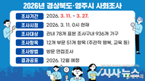 [시사뉴스 장시목 기자]시민의 생활 수준과 사회 인식을 종합적으로 파악해 정책 수립의 기초자료로 활용하기 위한 ‘2026년 경상북도·영주시 사회조사’가 실시된다. 조사 기간은 3월 11일부터 27일까지 17일간이며, 표본으로 선정된 영주시 내 936가구의 가구주와 만 15세 이상 가구원을 대상으로 진행된다. 조사는 시에서 채용한 조사원이 대상 가구를 직접 방문해 면접 방식으로 실시한다. 조사항목은 총 12개 부문 51개 문항으로 구성된다. 이 가운데 44개 문항은 경상북도 공통 항목이며, 7개 문항은 영주시 특성을 반영한 항목으로 전통시장 개선 사항과 시정의 우선 중점 추진 분야 등이 포함된다. 조사 과정에서 수집된 개인정보는 「통계법」 제33조(비밀의 보호)에 따라 철저히 보호되며, 통계 작성 목적 외에는 사용되지 않는다. 조사 결과는 오는 12월 영주시청 누리집을 통해 공표될 예정이며, 지역 균형 발전과 복지 시책 추진 등 시정 정책 수립을 위한 기초자료로 활용될 예정이다. 김한득 홍보전산실장은 “사회조사 결과는 시민의 삶의 질과 지역 현황을 파악하는 중요한 자료가 된다”며 “조사원이 방문할 경우 시민 여러분의 적극적인 참여와 성실한 응답을 부탁드린다”고