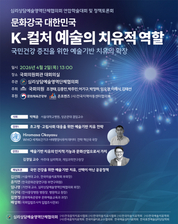 [시사뉴스 정춘옥 기자] K-컬처가 ‘마음건강’을 돌보는 문화치유 영역으로 확장된다. 오는 4월 2일(목) 오후 1시 국회의원회관 대회의실에서 ‘문화강국 대한민국, K-컬처 예술의 치유적 역할’을 주제로 한 연합학술대회 및 국회 토론회가 개최된다. 이번 행사는 조경태, 김종민, 박주민, 어기구, 박주하, 임오경, 이해식, 김태선 의원 등 8개 의원실이 공동 주최하고, 문화체육관광부와 온프렌즈, 전국지역아동센터협의회가 후원한다. 미술·음악·표현예술 등 8개 단체의 협의체인 심리상담예술영역단체협의회(심상예단협)*가 주관하며, 예술 기반 치유의 공공 정책화를 위한 본격적인 정책 행보의 출발점이 될 것으로 기대된다. 이번 토론회는 고령화와 사회적 고립 등 현대 사회의 주요 문제에 대응해 예술치유와 문화치유의 공공적 역할과 사회적 확장 가능성을 논의하는 자리다. 주요 강연으로는 WHO 히로마사 오카야수 국장이 ‘초고령 및 고립사회 대응을 위한 글로벌 예술 기반 치유 전략’을 발표하며, 심리학자 김경일 교수는 예술 기반 치유의 인지적 가치와 역할을 조명할 예정이다. 예술치유는 임상적 치료 개념을 넘어 문화적·사회적 차원의 마음건강 증진을 지향한다. 지구덕(한서중앙병원
