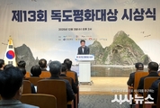 [시사뉴스 하정수 기자] 경상북도와 (재)독도평화재단은 3일 동부청사 강당에서 경상북도 환동해지역본부장, (재)독도평화재단 이병석 대표, 포항시장, TBC 대표이사, 수상자 등 100여 명이 참석한 가운데 제13회 독도평화대상 시상식을 개최했다. 이번 시상식은 개회사, 축사, 수상자 심사 결과 보고, 역대 수상자 소개 영상 상영 후 시상 및 수상소감 발표순으로 이어졌다. 올해 독도평화대상 수상자는 ▴동도상에 울릉군 독도관리사무소 안전지도팀 ▴서도상에 영남대학교 독도연구소 ▴특별상에 일본인 작가 구보이 노리오(久保井規夫)씨가 받았다. 동도상을 수상한 울릉군 독도관리사무소 안전지도팀은 2005년 독도관리사무소 설치 이후 20년간 현장에서 독도 관리와 안전지도 업무를 수행하면서 독도 주민, 입도 탐방객의 안전을 지켜왔다. 풍랑과 맞서는 환경에 노출된 독도(서도)에 상주하며 근무하고 있는 점과 천연보호구역인 독도의 보존을 위해 위험 요소를 사전에 점검하고 탐방객에게 독도가 대한민국 영토임을 몸소 알리며 묵묵히 임무를 수행해 온 점이 높은 평가를 받았다. 서도상을 수상한 영남대 독도연구소는 올해 설립 20주년을 맞은 전국 대학 최초 독도 전문 연구기관으로 일본 측 영