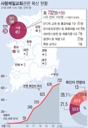 [시사뉴스 강민재 기자] 서울 성북구 사랑제일교회 신종 코로나바이러스 감염증(코로나19) 집단감염 여파가 체육입시학원 뿐만 아니라 시내 인근 학원가에서도 최소 200여명의 학생과 교직원 접촉자를 발생시킨 것으로 파악됐다. 서울시교육청은 사회적 거리두기 2단계 시행에 따라 문을 닫은 300인 이상 학원들을 점검하는 데 이어 300인 미만 중소규모 학원들도 방역수칙 점검에 나서겠다고 밝혔다. 시교육청 관계자는 22일 뉴시스와 통화에서 "사랑제일교회 관련으로 감염된 학생 8명이 학원 5개를 다닌 것으로 파악하고 있다"며 "접촉자만 학생 187명, 강사와 직원 27명이며 여기서 더 늘어날 수 있다"고 말했다. 조희연 서울시교육감도 전날 자신의 페이스북에서 "서울 학교의 확진자 135명(치료중 77명·퇴원 58명) 중 성북사랑제일교회 관련 확진 학생과 교직원이 26명"이라며 "그동안은 한자리 숫자나 10명 내외였는데, 갑자기 이런 위기상황이 나타난 것"이라고 밝혔다. 질병관리본부 중앙방역대책본부(방대본)의 지난 21일 낮 12시 기준 국내 주요 코로나19 발생 현황에 따르면 사랑제일교회 관련 확진자는 732명으로 연일 증가하고 있다. 서울에서는 총 451명이 감염됐고