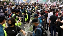 [시사뉴스 강민재 기자] 서울시의 집회금지 명령에도 불구하고 보수단체들이 15일 서울 도심에서 대규모 광복절 집회를 강행했다. 일부 참가자들은 경찰들과 잠시 충돌하기도 했다. 이날 전광훈 목사가 이끄는 사랑제일교회와 자유연대 등 보수단체들은 서울 종로구 경복궁역 인근에서 정부와 여당을 규탄하는 집회를 진행했다. 비가 오는 날씨에도 집회 시작 2시간여 전부터 참가자들이 속속 모여들었다. 우비를 입은 경찰들이 참석자들에게 일일이 서울시의 집회금지명령에 대해 설명하고 돌아가길 촉구했다. 하지만 일부 참석자들은 항의하거나 움직이지 않는 모습이 포착되기도 했다. 또 비를 피해 잠시 지하철 역사에 내려가서 기다리거나 인근 카페에서 기다리는 모습도 눈에 띄었다. 자유연대와 사랑제일교회가 개최한 집회 참석자들은 당초 경복궁역에서 집회를 열려고 했지만, 사방에 둘러 쌓인 펜스와 경찰차, 경찰병력을 보고 다른 보수단체 '일파만파'의 집회장소인 동화면세점으로 대규모 이동했다. 이 과정에서 횡단보도를 통해 길을 건너라는 경찰의 지시를 지키지 않는 일부 집회 참석자들과 경찰간에 몇분간 몸싸움이 벌어지기도 했다. 참석자들은 단체로 "(길을) 열어라"고 외치며 경찰들이 만든 벽을 몸으