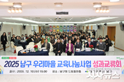 [시사뉴스 장시목 기자]대구 남구(구청장 조재구)는 지난 12월 10일, 구청 드림피아홀에서 동별 추진위원과 청소년 등 100여 명이 참석한 가운데 ‘2025년 남구 우리마을 교육나눔사업 성과교류회’를 개최하였다. 대구 남구 우리마을 교육나눔사업은 이천동, 봉덕3동, 대명2동, 대명4동, 대명5동, 대명6동, 대명9동, 대명11동 총 8개 마을에서 참여하고 있으며, 동별 추진위원회를 중심으로 동 행정복지센터, 학교 등 유관기관과 교육협력 네트워크를 구축하여 다양한 프로그램을 진행하며 마을 청소년 육성·보호에 앞장서고 있다. 이번 성과교류회는 지난 1년 간의 우리마을 교육나눔사업 추진실적과 각 마을별 활동 프로그램 공유, 유공 추진위원 8명 및 청소년 8명에 대한 표창장 수여, 공예체험 등의 순서로 진행되었으며, 특히 대명6동 청소년들의 복타공연과 대명5동 청소년들의 기타연주 공연으로 더욱 풍성하고 뜻깊은 교류의 장이 되었다. 조재구 남구청장은 “ ‘삶의 과정이 곧 교육의 과정’이라는 말처럼 생활 현장인 마을이 청소년의 보호와 육성 등 교육의 터전”이라며, “마을 전체가 청소년들의 건전한 성장을 위한 배움터가 될 수 있도록 남구에서는 앞으로도 최대한 역량을 모