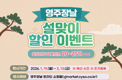 [시사뉴스 장시목 기자]영주시는 설 명절을 앞두고 공식 온라인 쇼핑몰 ‘영주장날’을 통해 지역 농·특산물을 합리적인 가격에 구매할 수 있는 대규모 할인 행사를 진행한다고 밝혔다. ‘설상가상 설 할인전’이라는 이름으로 마련된 이번 행사는 오는 1월 19일부터 2월 13일까지 진행되며, 주류를 제외한 전 상품을 대상으로 할인 혜택이 제공된다. 축산류와 양곡류는 20%, 그 외 품목은 25% 할인이 적용된다. 할인 수량은 계정당 축산류 최대 10개, 양곡류 최대 3개까지로 제한되며, 대량 구매를 원하는 고객은 영주장날 고객센터를 통해 대량주문서를 제출하면 별도 안내를 받을 수 있다. 행사는 예산 소진 시 조기 종료될 수 있다. 이와 함께 행사 기간 동안 매일 오전 10시, 영주장날 홈페이지 메인 배너를 통해 선착순 랜덤 할인 쿠폰 이벤트도 운영된다. 쿠폰은 최소 1천 원부터 최대 1만 원까지 무작위로 지급되며, 발급 당일에 한해 사용 가능하다. 쿠폰별 최소 주문 금액은 △1만원 쿠폰(최소 주문 금액 3만원 이상), △5천원 쿠폰(최소 주문 금액 2만원 이상), △1~3천원 쿠폰(최소 주문 금액 1만 5천원 이상) 구매 시 사용 가능하다. 강매영 유통지원과장은 “설