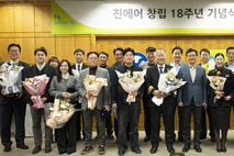 [시사뉴스 김성훈 기자] 진에어가 22일 서울 강서구 본사에서 창립 18주년 기념 행사를 열고 새로운 도약을 다짐했다. 이날 기념식은 임직원이 참석한 가운데 회사의 발자취를 돌아보는 영상 시청을 시작으로 무사고 비행안전 및 모범 직원 표창 수여와 장기 근속 시상, 대표이사의 기념사, 축하 케이크 커팅, 기념 촬영 순으로 진행됐다. 특히 이번 행사에는 에어부산과 에어서울 대표이사를 초청해 진에어의 창립 18주년을 축하하는 시간을 가졌다. 또 현장에는 직원들이 직접 작성한 축하 메시지가 전시되어 서로를 격려하는 훈훈한 분위기를 자아냈다. 진에어 박병률 진에어 대표이사는 기념사를 통해 "지난 18년간 회사의 발전을 위해 헌신해주신 임직원 여러분께 깊은 감사와 존경의 말씀을 전한다"고 말했다. 그는 "올해는 항공산업의 지형을 바꿀 통합이라는 역사적인 전환점을 목전에 둔, 그 어느때보다 중요한 의미를 지닌 한해"라고 강조했다. 이어 "통합 LCC 출범을 잘 준비하고 '아시아 최고의 LCC'로 도약하기 위한 기반을 다져가야 한다"고 당부했다. 이를 위해 진에어는 올해 한층 강화된 안전 및 IT 보안 역량을 갖춰 고객 신뢰를 높이는 한편, 물리적 결합을 성공적으로 마무리