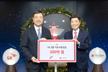 [시사뉴스 홍경의 기자] SK그룹이 연말을 맞아 이웃사랑 성금 200억 원을 사회복지공동모금회에 기탁했다. SK는 16일 지동섭 SK수펙스추구협의회 SV위원장이 서울 중구 정동에 있는 사회복지공동모금회(회장 김병준)를 찾아 성금 200억 원을 전달했다고 밝혔다. SK는 지난 1999년 이후 매년 사회복지공동모금회에 이웃사랑 성금을 기부해왔다. 특히 올해는 지속가능한 지역사회를 위한 모금회 취지에 동감하고 기업의 사회적 책임을 실천하는 측면에서 전년대비 80억 원을 늘렸다. 올해까지 희망나눔 캠페인 누적 기부액은 총 2,665억 원에 이른다. SK는 올해 그룹 차원의 성금 200억 원 외에도 SK이노베이션, SK하이닉스, SK AX, SK실트론, SK머티리얼즈 등 계열사 임직원들의 자발적 기부를 통해 약 60억 원의 임직원 기금을 추가로 조성했다. 이를 희망나눔 캠페인 성금과 합산 시 연간 기부 규모는 약 260억 원에 달한다. SK는 올해에도 사회문제 해결 및 다양한 이해관계자들의 행복 추구를 위해 폭 넓은 활동을 펼쳐왔다. 각 계열사들은 결식우려아동 도시락 지원(행복두끼) 및 사별 맞춤형 사회공헌 사업 등을 꾸준히 전개해왔다. 한편 SK는 올 7월 전국적인