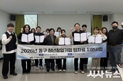 [시사뉴스 이성동 기자] 대구 동구청은 지난달 31일 동구청년센터에서 ‘청년 창업기업 사무실 임차료 지원사업’ 선정 기업들과 협약을 체결하고 본격적인 지원에 나섰다. ○ 임차료 지원사업은 공모를 통해 관내 7년 이내 초기 창업기업 9개사를 최종 선정했으며, 선정 기업들은 최대 10개월간 50만원 한도 내에서 월 임차료의 50%를 지원받게 된다. ○ 임차료 지원 사업은 아이디어와 기술력을 보유하고도 초기 자본 부족과 고정비 부담으로 어려움을 겪는 청년 창업가들에게 월 임차료의 일정 부분을 지원해 폐업률을 낮추고 성장을 돕는 맞춤형 지원 정책이다. ○ 지난해 처음 시행돼 15개 창업기업을 지원했으며, 청년 창업가들이 절감된 비용을 사업에 재투자해 기업 경쟁력을 강화하기도 했다. ○ 김태운 동구청장 권한대행은 “청년들이 우리 지역 사회에 안착하고 성공적인 창업가로 성장할 수 있도록 꾸준히 돕겠다”고 말했다.