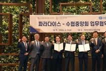 [시사뉴스 홍경의 기자] 수협중앙회는 SH활어유통센터를 활용해 국내 양식수산물 등의 호텔 식자재 공급을 확대한다고 7일 밝혔다. 수협중회는 지난 3일 인천 영종도 파라다이스시티 에메랄드홀에서 파라다이스세가사미, 파라다이스호텔 부산과 업무협약(MOU)을 체결했다. 협약식에는 이승룡 수협중앙회 경제사업부 대표, 박종훈 파라다이스세가사미 부사장, 유은직 파라다이스호텔 부산 경영지원그룹장이 참석했다. 세 기관은 호텔 식자재 조달을 위한 협력 체계를 구축하고, SH활어유통센터와 자체 가공·물류 인프라를 활용해 친환경 국제 인증(ASC) 양식수산물의 안정적 공급을 확대하기로 했다. SH활어유통센터는 수협중앙회가 국내 유력 수산물 전문회사와 공동투자로 설립한 합작회사로, 기존 공판장과 바다마트, 노량진수산시장 등으로 분산돼 운영되던 활어 사업을 통합 관리하기 위해 설립됐다. 이번 협약을 통해 파라다이스 측은 산지의 고품질 양식수산물을 SH활어유통센터를 통해 조달받을 수 있게 됐다. 아울러 세 기관은 산지 식자재 시장 조사 등 전략적 협업으로 ESG 기반 수산물 확보망을 강화할 계획이다. 이승룡 수협중앙회 경제사업부 대표는 "이번 협약을 계기로 친환경 수산물 소비 문화 확