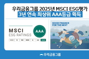 [시사뉴스 홍경의 기자] 우리금융그룹은 세계적인 투자정보 제공기관인 MSCI(모건스탠리캐피털인터내셔널)가 실시한 2025년도 ESG 평가에서 3년 연속 최상위 등급인 AAA등급을 획득했다고 16일 밝혔다. MSCI ESG 평가는 전 세계 8,500개 이상 상장기업을 대상으로 ESG 경영 수준을 종합적으로 평가하는 글로벌 표준 지표로 널리 인정받고 있다. 평가 등급은 AAA(최상위)부터 CCC(최하위)까지 7단계로 나뉘며, ‘AAA’ 등급은 업계 최고 수준의 ESG 리스크 관리 역량을 갖췄음을 의미한다. 우리금융그룹은 이번 평가에서 △기업 지배구조 △데이터 정보보호 △환경 영향 등의 항목에서 ‘Leader(선도그룹)’ 수준으로 높은 점수를 받으며 3년 연속 최상위(AAA) 등급을 유지했다. 특히, 이사회 내 ‘윤리·내부통제위원회’를 신설하여 이사회 중심의 감독 기능을 강화하고 윤리경영 거버넌스를 고도화한 점에서 높은 평가를 받았다. 또한, 생성형AI 및 SaaS 활용 보안 가이드를 마련하고, 그룹 공동 클라우드 전용 보안 솔루션을 구축하는 등 선제적 정보보호 관리체계를 마련한 점도 리더십 부문에서 긍정적으로 작용했다. 환경 분야에서도 친환경 금융 지원을 꾸준히