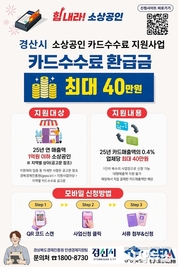 [시사뉴스 장시목 기자]경산시는 23일부터 소상공인의 경영 부담을 완화하고 지원을 강화하기 위해 ‘소상공인 카드수수료 지원사업’을 시행한다고 밝혔다. 지원대상은 2025년 매출 1억 원 이하 관내 소상공인으로 전년도 카드 매출액의 0.4%를 지원하며, 지원금은 최소 5만 원에서 최대 40만 원까지 지급된다. 다만, 폐업 업체와 타지역 사업자, 금융거래가 어려운 경우 및 유흥·도박 업종 등은 지원 대상에서 제외된다. 신청은 온라인 홈페이지(행복카드.kr) 또는 읍면동 행정복지센터, 경산시 소상공인연합회, 경북경제진흥원 현장 접수처에서 가능하며, 신청 시 사업자등록증과 통장 사본을 제출해야 한다. 지원금은 사업주 본인의 계좌로 지급되며, 신청일을 기준으로 최대 2개월 이내에 지급될 예정이다. 자세한 사항은 경상북도경제진흥원(☎1800-8730)으로 문의하면 된다. 경산시장 권한대행 이도형 부시장은 “이번 카드수수료 지원을 통해 최근 고유가 등으로 어려움을 겪고 있는 소상공인들에게 실질적인 도움이 되길 바란다”며, “앞으로도 현장의 목소리를 반영한 맞춤형 지원을 지속적으로 확대해 지역 경제 회복과 상권 활성화에 힘쓰겠다”고 말했다.