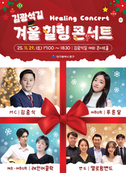 [시사뉴스 이성동 기자] 대구 중구(구청장 류규하)는 오는 11월 29일 오후 5시, 초겨울 추위를 달래줄 음악 공연인 ‘김광석다시그리기길 겨울 힐링콘서트’를 개최한다. 계절에 맞는 편안한 음악을 통해 시민들에게 치유와 휴식을 제공하고자 마련된 ‘힐링콘서트’는 여름과 겨울 두 차례 개최되며, 지난 8월 23일 열린 ‘여름 힐링콘서트’ 역시 많은 관람객의 호응으로 성황리에 진행된 바 있다. 이번 ‘겨울 힐링콘서트’에서는 크리스마스 캐럴과 재즈 등 겨울 분위기가 물씬 나는 대중음악 공연이 1시간 30분간 이어질 예정이며, 김광석다시그리기길만의 감성적인 야외 공간에서 관람객들에게 특별한 음악 경험을 선사할 전망이다. 중구청은 야외 공연 특성상 추운 날씨를 고려해 관람객들에게 핫팩을 배부해 따뜻하고 쾌적한 관람 환경을 조성할 계획이다. 류규하 중구청장은 “이번 겨울 힐링콘서트가 본격적인 겨울을 앞두고 시민들의 마음을 포근하게 감싸주는 시간이 되길 바란다”며 “김광석다시그리기길을 찾는 분들께 따뜻한 추억을 선사할 수 있도록 최선을 다하겠다”고 말했다.