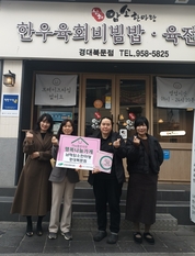 [시사뉴스 이성동 기자] 대구 북구 산격3동 행정복지센터(동장 박현종)는 11월 27일(목) 남해암소한마당 경대북문점과 BHC치킨 대구경대북문점 2곳에 행복나눔가게 현판을 전달했다. 행복나눔가게란 어려운 이웃들이 무료로 이용할 수 있도록 우리 지역 내의 상점, 학원 등에서 물품이나 서비스를 제공하여 도움을 주는 나눔 사업으로, 산격3동은 2023년부터 The 좋은 이웃 행복나눔가게 릴레이 사업을 꾸준히 실천하여 13호점까지 등록하게 되었다. 행복나눔가게 12호점인 남해암소한마당은 매월 5개의 소고기국밥 밀키트를, 13호점인 BHC치킨은 치킨세트 5개를 매월 제공하기로 협약하였다. 남해암소한마당과 BHC치킨의 대표자 하영미는 “지역사회 나눔에 조금이나마 동참하여 주변 이웃들에게 사랑을 전할 수 있어서 기쁘다”라고 밝혔다. 박현종 동장은“행복나눔가게 릴레이 사업에 기꺼이 동참해 주신 하영미 대표님께 감사드리며 나눔 속에 행복한 산격3동이 될 수 있도록 더욱 노력하겠다.”고 말했다.