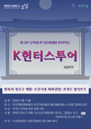 [시사뉴스 이성동 기자] 대구 수성문화재단(이사장 김대권)은 올해 2월부터 11월까지 대구·경북 외국인 유학생을 대상으로 한국문화체험 현장학습 ‘K헌터스 투어’를 운영한다. ‘K헌터스 투어’는 케이팝(K-POP), 넷플릭스(Netflix) 등 글로벌 콘텐츠를 통해 해외에서 주목받는 한국문화를 외국인 유학생들이 직접 보고, 입고, 만들고, 느낄 수 있도록 구성한 당일형 체험 문화관광 프로그램이다. 투어 프로그램은 ▲한국전통문화체험관에서의 다례·한복 체험 ▲대구간송미술관에서의 조선시대 회화 관람 ▲들안예술마을에서의 복을 기원하는 호작도 공예 체험 등으로 구성된다. 이 밖에도 김밥 만들기 체험, 죽궁 체험 등 프로그램을 추가할 수 있으며, 참가자들이 직접 완성한 호작도 그림엽서는 유학생들의 고국으로 발송해 주는 특별한 경험도 제공한다. 수성문화재단은 지난해 넷플릭스 영화 ‘케이팝 데몬 헌터스’를 테마로 외국인 유학생 대상 체험학습 투어를 운영해, 총 7회에 걸쳐 216명이 참여하는 성과를 거둔 바 있다. 이번 투어에는 외국어 통역 가이드 서비스가 제공되며, 투어 일정과 세부 과정은 각 참여 대학의 상황에 맞춰 조정할 수 있다.