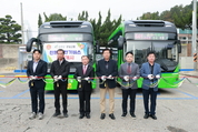 [시사뉴스 고재섭 기자] 금산군은 10월 31일 금산읍 소재 한일교통 차고지에서 전기 저상버스 개통식을 개최했다. 이날 박범인 금산군수, 금산군의회 김기윤 의장, 송영천 금산군의원, 윤성수 한일교통 대표 이사, 앙면석·김기태 한일교통 운전자 노조 조합장 등이 참석한 가운데 전기저상버스차량 설명 및 후문 휠체어 탑승 슬라이드 시연, 테이프 커팅식 등이 진행됐다. 참석자들은 개통식 이후 한일교통 사무실에서 한일교통 현황 설명 등을 듣는 시간을 가졌다. 박범인 금산군수는 “군민의 안전한 이동을 위해 노력하시는 윤성수 대표님과 직원들께 감사드린다”며 “이번에 도입되는 전기저상버스를 통해 군민의 이동편의가 증진할 수 있도록 힘써주시기 바란다”고 말했다.