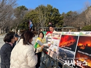 [시사뉴스 장시목 기자]겨울 끝자락, 봄을 앞둔 산과 공원 입구에 같은 풍경이 반복됐다. 사진 앞에서 멈춰 선 시민, 스티커를 붙이며 고개를 끄덕이는 손, 따뜻한 차를 건네는 자원봉사자의 미소. 장소는 달랐지만 질문은 같았다. “산불, 막을 수 있을까?” 신천지 자원봉사단 부산경남동부지역연합회는 지난 2월 초, 부산·울산·진주·창원·김해 등 5개 지역에서 산불 예방 캠페인을 연합으로 전개했다. 부산동부지부를 중심으로 울산지부, 진주지부, 창원지부, 김해지부가 각각 지역 특성에 맞는 방식으로 시민들을 만났지만, 캠페인의 방향과 메시지는 하나였다. 산불 예방은 특별한 일이 아니라, 반복되는 일상 속 실천이라는 점이다. 부산 해운대 대천공원 입구에서는 등산객들의 발걸음이 자연스럽게 사진 앞에서 멈췄다. 2025년 산불 피해 사진전은 말보다 강한 메시지를 전했다. 한 시민은 “사진으로 보니 겨울철 산불이 얼마나 무서운지 실감 난다”며 스티커를 붙이며 산불 원인을 하나하나 짚었다. 같은 장소에서 꾸준히 봉사를 지켜봐 온 시민들은 “또 나오셨네요. 늘 수고가 많다”며 먼저 인사를 건네기도 했다. 일회성 캠페인을 넘어 신뢰가 쌓였음을 보여주는 장면이었다. 울산 문수산 등