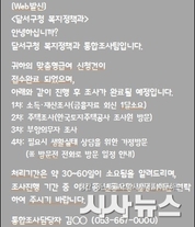 [시사뉴스 장시목 기자]대구 달서구(구청장 이태훈)는 맞춤형 복지급여(생계·의료·주거·교육) 신청인을 대상으로 조사 진행 상황을 안내하는 ‘알림톡 서비스’를 2026년에도 확대 시행한다. 맞춤형 복지급여는 신청인이 동 행정복지센터를 방문해 급여를 신청하면, 구청 통합조사팀이 소득·재산 및 사실 확인 조사를 거쳐 수급 여부를 결정하는 제도다. 조사 기간은 평균 30~60일이 소요돼, 신청인이 선정 결과를 기다리는 동안 절차와 진행 상황에 대한 문의가 반복적으로 발생해 왔다. 이에 달서구는 2024년부터 알림톡 서비스를 도입해, 구청 통합조사팀에서 신청 서류를 확인한 후 신청인에게 조사 담당자, 조사 기간 및 절차 등을 알림톡으로 안내하고 있다. 아울러 추가 문의에 대비해 담당자 연락처도 함께 제공함으로써 민원 편의를 높였다. 그 결과, 2024년 이후 연간 약 5,000건의 알림톡이 발송되며 복지급여 신청 절차에 대한 주민 신뢰도가 높아졌고, 조사 과정의 투명성과 체계성도 한층 강화됐다. 특히 실시간 정보 제공을 통해 신청인의 절차 이해도가 향상되면서 민원 발생률이 감소하고, 복지 서비스 전반에 대한 만족도 역시 크게 높아졌다. 이태훈 달서구청장은 “2026년