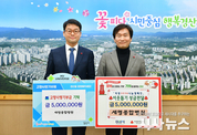 [시사뉴스 장시목 기자]의료법인 서명의료재단 세명종합병원(이사장 최영욱)은 26일 경산시청을 방문하여 이웃돕기 성금 500만 원과 고향사랑 기부금 500만 원을 각각 기탁했다. 2009년 개원한 세명종합병원은 지역을 대표하는 의료기관으로 자리매김하고 있으며, 지난 16년간 빠짐없이 이웃사랑을 실천해 오고 있다. 지난해 연말에는 상이군경회 경산시지회를 방문해 후원금을 전달했으며, 경산시 새마을 부녀회가 주관한 사랑의 김장 담그기 행사에도 기부하는 등 꾸준히 이웃사랑을 실천해 오고 있다. 최영욱 이사장은 “지역사회와 함께 성장하며 받은 은혜를 어려운 이웃에게 조금이나마 돌려드리고자 이번 기탁을 하게 됐다. 나눔 문화가 지역사회 내에 정착되어 더불어 살아가는 사회가 되길 바란다”며,“지역사회를 위한 나눔을 꾸준히 실천해 나가겠다”고 말했다. 조현일 경산시장은 “어려운 여건 속에도 지역 응급 의료 기관으로 24시간 응급 의료체계를 유지하면서 시민 건강을 위해 헌신하고 있는 세명 종합병원 의료진과 임직원 여러분께 깊이 감사드린다. 기탁해 주신 성금은 꼭 필요한 곳에 소중하게 쓰일 수 있도록 하겠다”라며 감사의 인사를 전했다.
