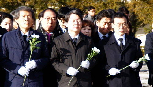 안 의원은 이날 오전 9시50분께 경남 김해 봉하마을을 방문, 고(故) 노무현 전 대통령 묘역을 참배하고 권양숙 여사를 예방했다. 국민의당에 합류한 문병호, 임내현 의원과 한상진 공동 창당준비위원장이 동행했다.