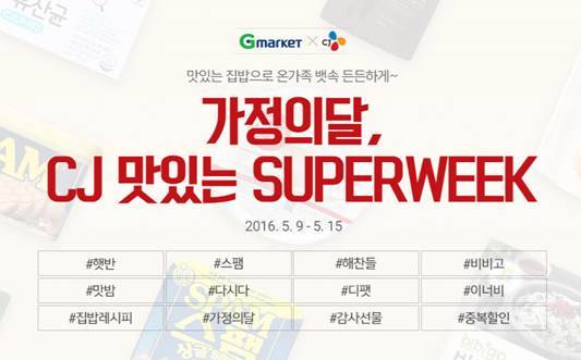 [시사뉴스 조아라 기자] 온라인쇼핑 사이트 G마켓이 CJ제일제당과 CJ프레시웨이와 함께 ‘가정의 달, CJ 맛있는 슈퍼위크(SUPER WEEK)’ 프로모션을 진행한다고 11일 밝혔다.