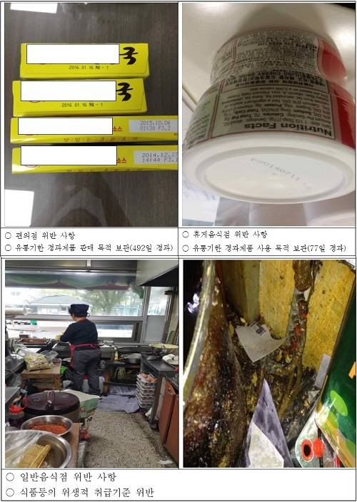강원 원주시의 편의점도 유통기한이 1년4개월 지난 소스를 판매 용도로 진열했다가 과태료 처분을 받았다. 이와 함께 서울 종로구의 분식점 두 곳은 무신고 영업을 하다 적발돼 형사 고발됐다.