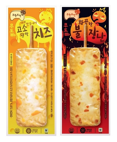 무한도전 로고를 활용한 재미있는 디자인과 위트 있는 제품명으로 시선을 사로잡은 사조대림 ‘무도빠’는 담백하고 쫄깃한 어묵에 치즈가 가득 담긴 무도빠 ‘너무 맛있어서 고소당한 치즈’와 매콤한 어묵 맛을 즐길 수 있는 무도빠 ‘화끈한 불장난’ 2종으로 구성됐다.