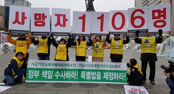 [시사뉴스 조아라 기자] 가습기살균제 피해 관련 시민단체가 “가습기살균제 사건으로 인해 사망한 피해자의 수가 1106명에 이른다”며 가해 기업들과 관련자들의 처벌을 촉구했다.