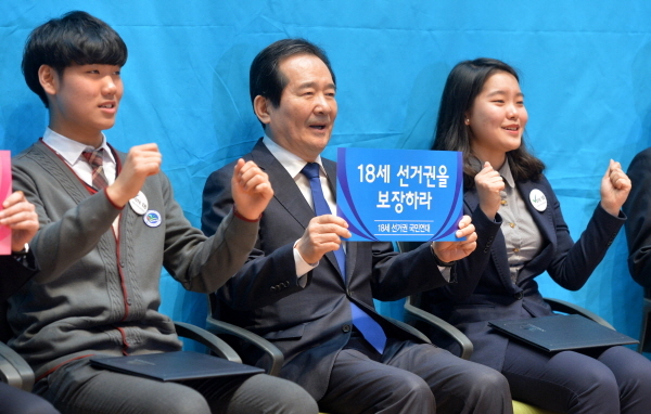 정세균 국회의장도 “선거연령의 글로벌 스탠다드가 ‘18세’”라며 여야 합의를 촉구하며 이를 거들고 있다. 정 의장은 국회에서 열린 ‘18세 선거권 보장을 위한 국민대회’에 참석해 “우리나라가 글로벌 스탠다드를 수용하지 못할 정도로 낙후된 나라냐? 당연히 글로벌 스탠다드를 채택해야지 않겠느냐”고 강조했다.