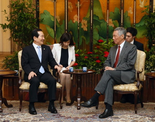 [시사뉴스 강민재 기자] 정세균 국회의장은 현지시간으로 20일 리센룽(Lee Hsien Loong) 싱가포르 총리를 면담하고 양국간 경제·외교·안보 협력에 관한 의견을 나눴다.