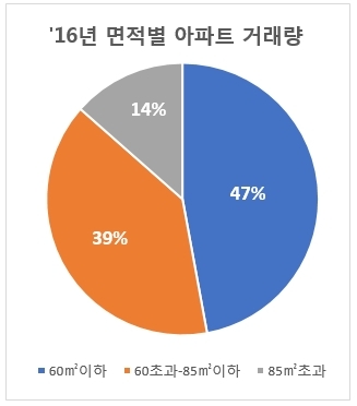 국토교통부 아파트 실거래가 자료에 따르면 지난해 아파트 매매거래량은 총 56만1268건으로, 이 중 47%인 26만4416건이 전용 60㎡이하 아파트들의 매매 거래였다.