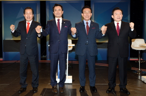 현재까지의 여론의 추이를 보면 홍 지사가 앞서 나가고, 나머지 후보들이 뒤를 쫓는 형국이다.