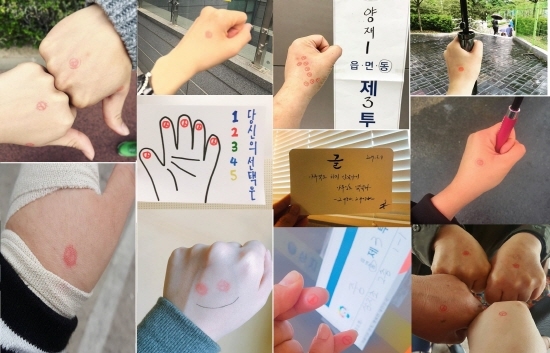 가장 눈에 띄는 모습은 '인증샷'이었다. 투표소 앞에서 포즈를 취하거나 투표 도장을 손등에 찍어 SNS에 올리는 인증샷 열풍은 '나는 의식 있는 유권자'란 이미지를 전하면서 딱딱한 정치 이벤트를 축제처럼 만들어줬다. 기존에는 유명 인사와 연예인 위주로 인증샷이 유행했지만, 이제는 스마트폰만 있으면 누구나 즐기는 대중적 현상으로 자리매김했다.