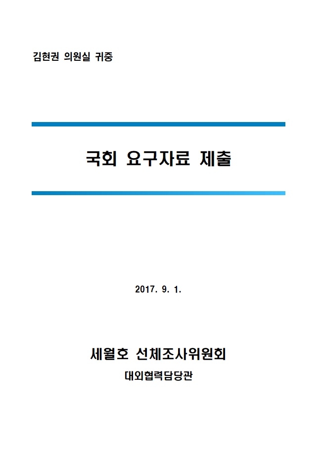 김현권 의원은 “그 동안 목포신항에서 활동해온 선체조사위원회가 차량 블랙박스의 영상 복원이라는 큰 성과를 올렸다”며 “그 동안 미수습자 수색·수습 등으로 미뤄져 왔던 세월호 선조위의 조사 활동이 탄력을 받아 세월호 침몰 원인을 명확하게 밝혀 내 주기를 바라고, 세월호 침몰원인에 대한 국민들의 의혹을 해소해 주기를 기대한다”고 말했다.