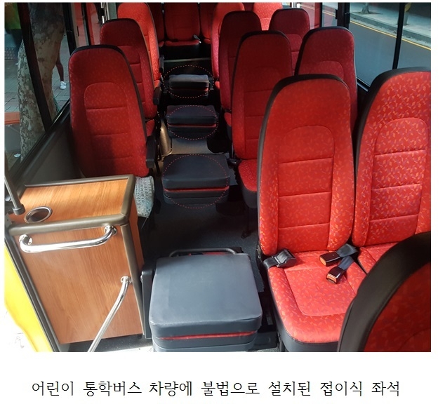 경찰의 한 관계자는 "어린이 통학버스에 불법으로 접이식 좌석을 설치하면 사고가 발생했을 때 내부 도피로가 확보되지 않아 큰 인명피해로 이어질 수 있다"고 말했다.