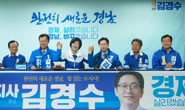 김경수 경남지사 후보는 "경남은 대한민국의 경제가 어려울 때는 산업화의 주역으로, 정치가 어려우면 민주주의의 파수꾼으로 가장 먼저 몸을 던져서 대한민국을 지켜왔던 곳이었다"며 "그랬던 경남이 지금은 정치도, 경제도 가장 뒤떨어져 있는 그런 지역이 돼버렸다"고 말했다. 그는 "이번 민주당 선대위 회의를 진주에서 개최한 것은 남다른 의미가 있다"며 "낙후돼 있는 서부경남지역의 경제를 이번 회의를 통해 혁신도시 완공과 KTX 조기 착공 등을 통해 경남의 성장동력을 이끌어갈 수 있도록 하기 위해 회의를 개최하게 됐다"고 밝혔다.