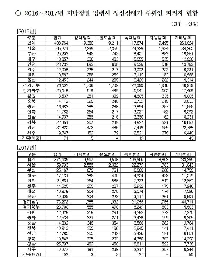 이같은 사실은 더불어민주당 김해영 의원(부산 연제·교육위)이 경찰청으로부터 제출받은 ‘2016~2017년 지방청별 범행시 정신상태가 주취인 피의자 현황’자료에서 밝혀졌다.