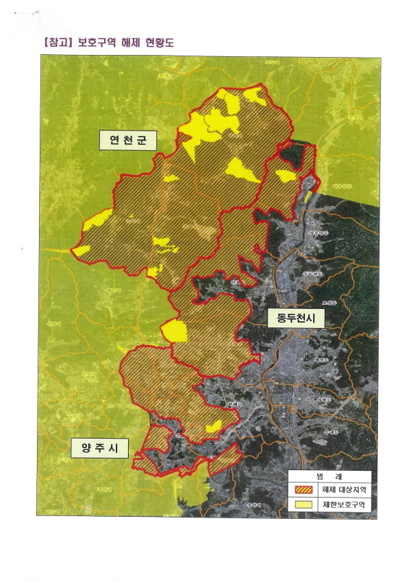 김 의원이 국방부에서 받은 자료에 따르면, 당초 동두천은 국가산업단지가 들어서는 상패동 부지만 해제대상이었는데, 동두천의 상봉암동, 상패동, 안흥동, 하봉암동 일대가 군사시설 보호구역으로부터 해제 되었고, 연천의 전곡읍 간파리, 늘목리, 양원리 일대 역시 군사시설 보호구역으로부터 자유로워지게 되었다고 전했다.