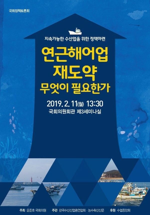 [시사뉴스 강민재 기자] 국회 농림축산식품해양수산위원회 윤준호 국회의원(더불어민주당, 부산 해운대을)은 오는 2월 11일(월) 오후 1시30분부터 국회의원회관 제3세미나실에서 ‘연근해어업 재도약, 무엇이 필요한가’국회정책토론회를 개최한다고 밝혔다.