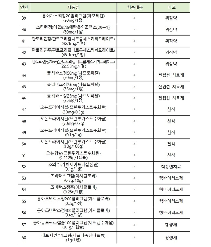 급여 정지는 대체의약품 생산·유통 및 구입·전산시스템 반영 등에 필요한 유예기간 3개월을 거쳐 6월15일부터 8월14일까지 이어진다.