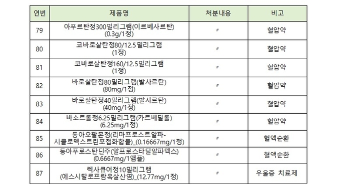 복지부는 임상적으로 동일한 대체약제 여부, 대체약제 처방·공급에 어려움, 환자 건강에 심각한 영향을 미칠 우려, 요양급여 정지 효과 등을 고려해 과장금 대체 사유에 해당하지 않는 87개 품목에 보험급여 정지 결정을 내렸다.