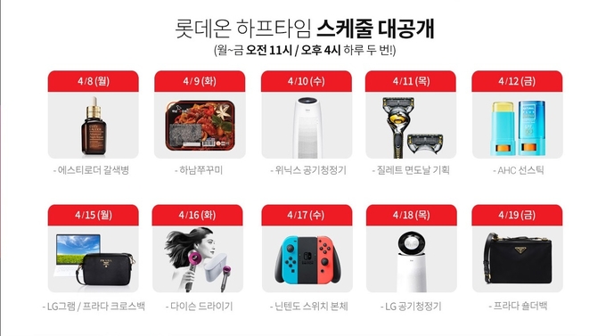 롯데온 하프타임 이벤트는 오는 19일까지 진행되며 해당 기간 동안 오전 11시, 오후 4시에 다양한 특가상품이 판매된다.