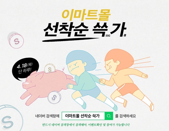 [시사뉴스 김성훈 기자] 온라인 이마트몰이 18일 단 하루 동안 ‘선착순 쓱가’ 이벤트를 진행한다. 특가 상품을 88% 할인 판매하는 행사다.