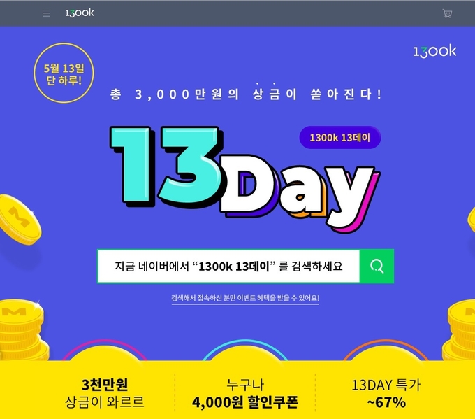[시사뉴스 김성훈 기자] 천삼백케이(1300k)는 13일 하루 동안 다양한 '13데이(13day)' 이벤트를 진행한다고 밝혔다.