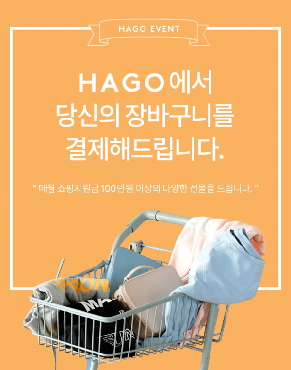 이를 통해 매월 1명의 고객을 선정, 100만원 상당의 쇼핑지원금을 적립금 형식으로 지급한다. 해당 적립금은 펀딩, 큐레이션 카테고리를 비롯해 하고(HAGO) 홈페이지 내 상품 구매 시 자유롭게 사용할 수 있다.