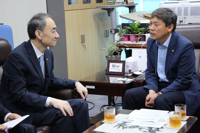 국회 농림축산식품해양수산위원회 소속 더불어민주당 김현권 의원(경북 구미을지역위원장)은 24일 왕정홍 방위사업청장과 구미경제의 새로운 활력 산업으로 부상하고 있는 지역 방위산업 육성에 대한 협력을 논의했다.