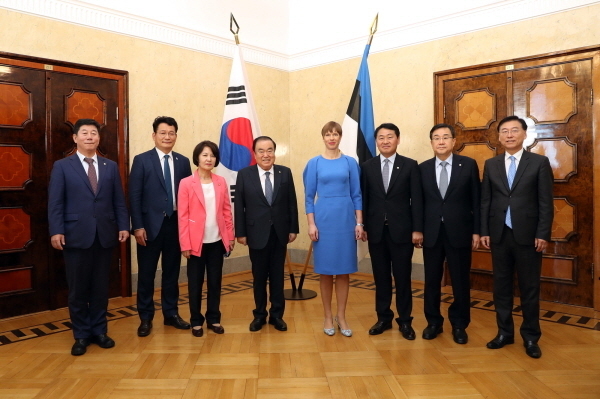 [시사뉴스 유한태 기자] 방러일정을 마무리하고 발트3국 순방에 나선 문희상 국회의장은 첫 공식 방문국인 에스토니아에 현지시간 5월 30일 도착, 게르스티 칼유라이드(Kersti Kaljulaid) 대통령과 헨 폴루아스(Henn Põlluaas) 국회의장, 수도인 탈린의 미카일 콜바트(Mihhail Kõlvart) 시장을 잇따라 만났다.