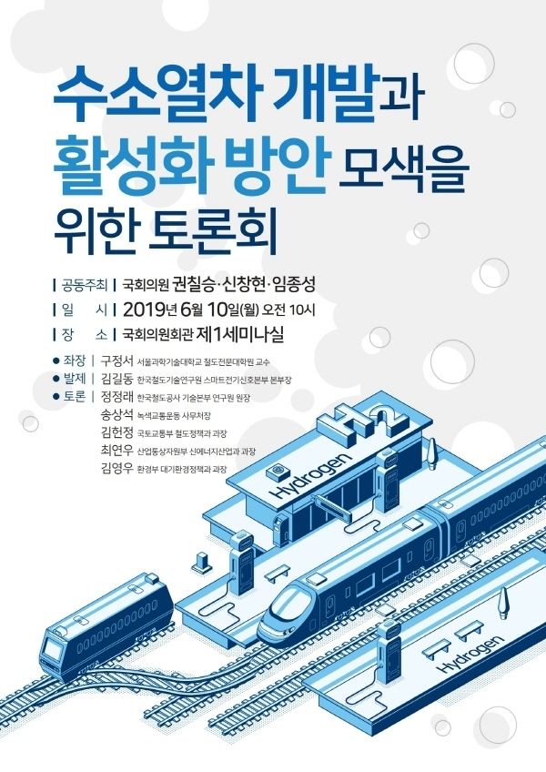 [시사뉴스 강민재 기자] 더불어민주당 신창현, 권칠승, 임종성 의원이 공동주최하고 한국철도차량산업협회가 후원하는 ‘수소열차 개발과 활성화 방안 모색을 위한 토론회’가 6월 10일 오전 10시 국회의원회관 제1세미나실에서 열린다.