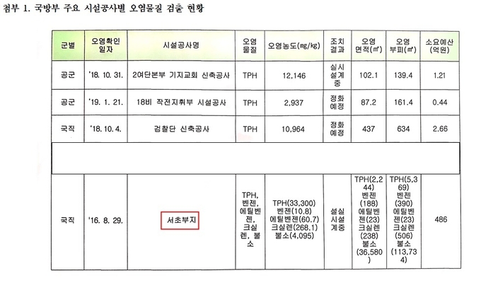 [시사뉴스 강민재 기자] 국회 국방위원회 김병기 의원(더불어민주당, 서울동작갑)은 서초구에 위치한 구 정보사령부(이하 정보사) 부지에서 기준치의 40배가 넘는 오염토가 검출된 것으로 확인했다.