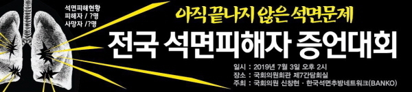 [시사뉴스 강민재 기자] ‘침묵의 살인자’로 불리는 1급 발암물질 석면으로부터 피해를 입은 석면피해자들의 증언대회가 국회에서 개최된다.