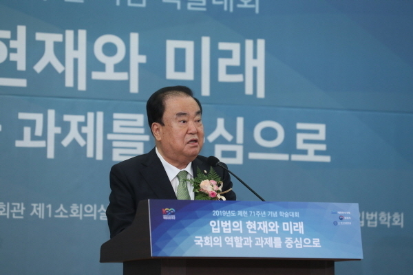 이 자리에서 문 의장은 “입법부라는 명칭에서도 알 수 있듯이 국회의 가장 중요한 책무는 법을 만드는 일이다. 국회 스스로 ‘일하는 국회’임을 증명하지 못한다면 국민의 신뢰는 더욱 멀어질 것”이라면서 “71년의 헌정사를 이어가는 대한민국 국회가 대화와 타협을 통해 민생입법에 매진해주기를 당부하고 싶다” 고 말했다.