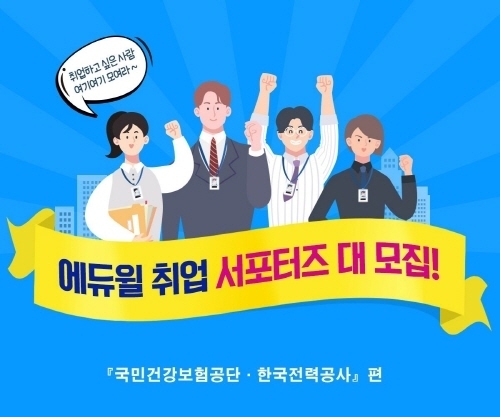 국민건강보험공단은 채용 공고를 통해 오는 10월 5일 필기시험을 치른다고 발표하기도 했다. 이에 에듀윌은 하반기 국민건강보험 및 한국전력공사에 취업을 희망하는 취준생을 위해 해당 서포터즈를 진행하게 됐다고 밝혔다.